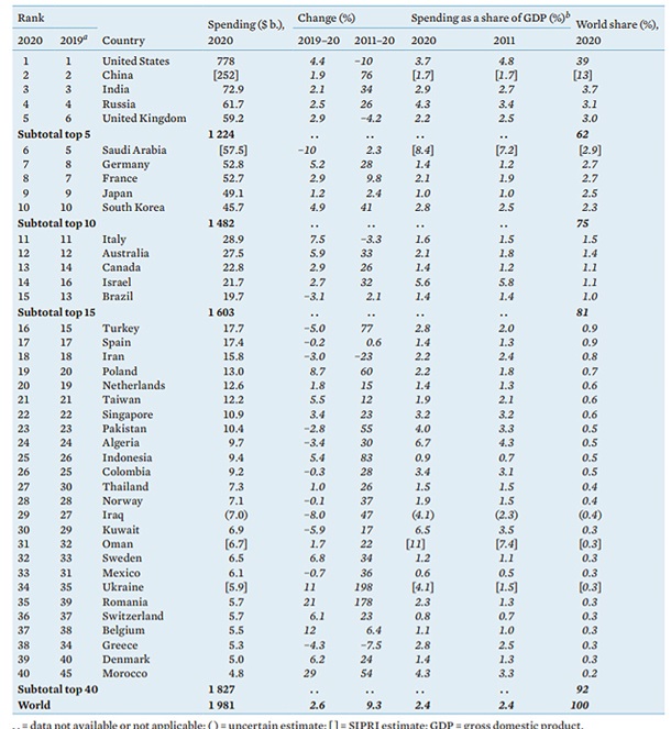 «Можно с уверенностью сказать, что пандемия не имела значительного влияния на глобальные военные расходы в 2020 году», — говорится в отчете.