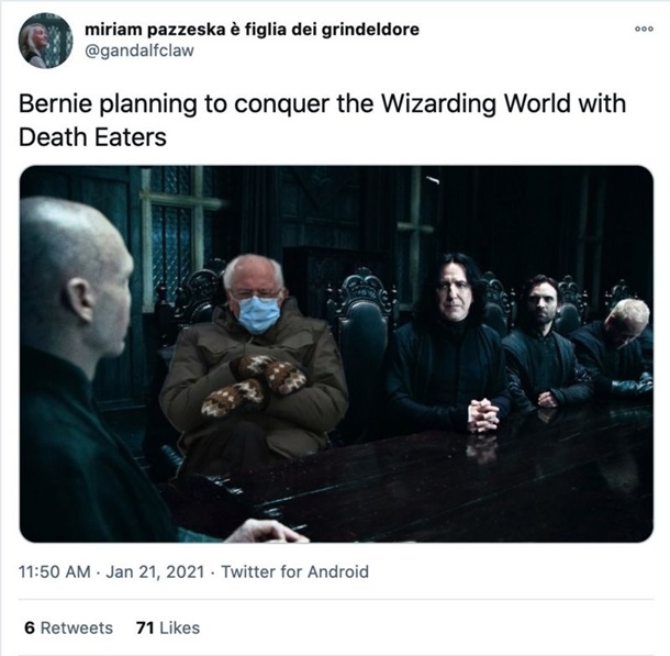 В соцсетях вставили фото сенатора в сцены многих известных фильмов. Так, Берни Сандерс стал членом команды Мстителей, а также присоединился к героям фильмов из серии Властелин колец и Гарри Потер.