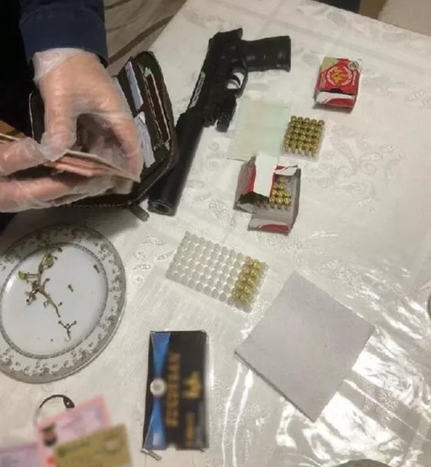 У них изъяли три пистолета, один из которых был оснащен глушителем и лазерным прицелом, а также магазины и патроны для оружия.