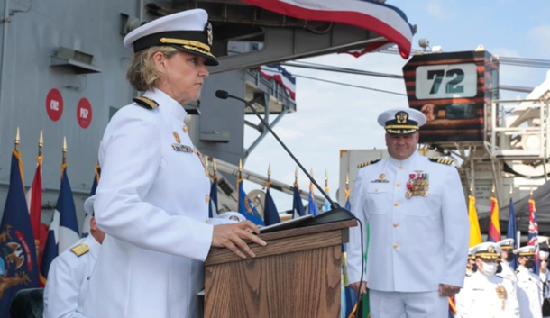 Впервые атомный авианосец в США возглавила женщина