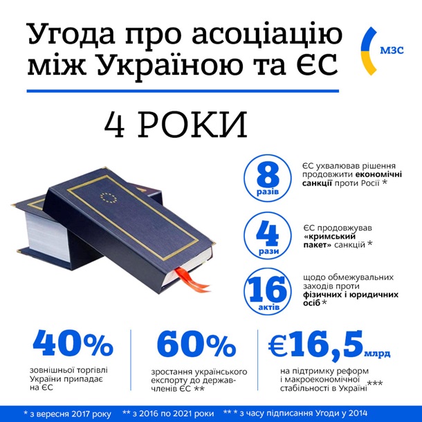 Ровно четыре года назад Соглашение об ассоциации Украины с Евросоюзом вступило в силу.