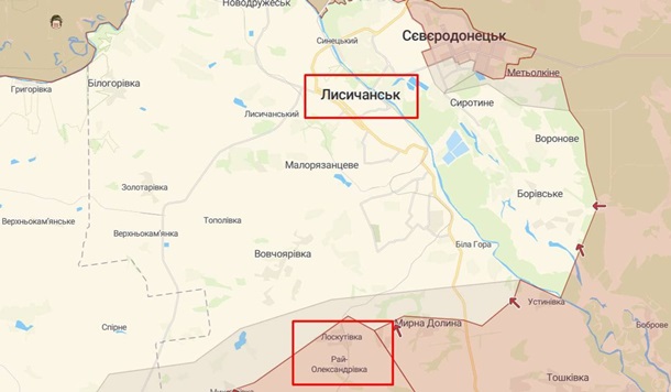 Російські війська намагаються вийти до Лисичанська з півдня, щоб не форсувати річку Сіверський Донець у Сєвєродонецьку, де тривають запеклі вуличні бої. Українські сили на сьогодні контролюють лише територію хімзаводу Азот на заході міста.