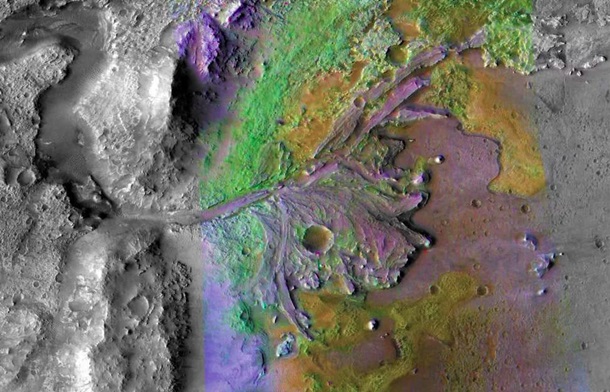 Спутниковые изображения кратера Езеро, куда сел аппарат, указывают на то, что когда-то там впадало в огромное озеро пересохшая ныне река.